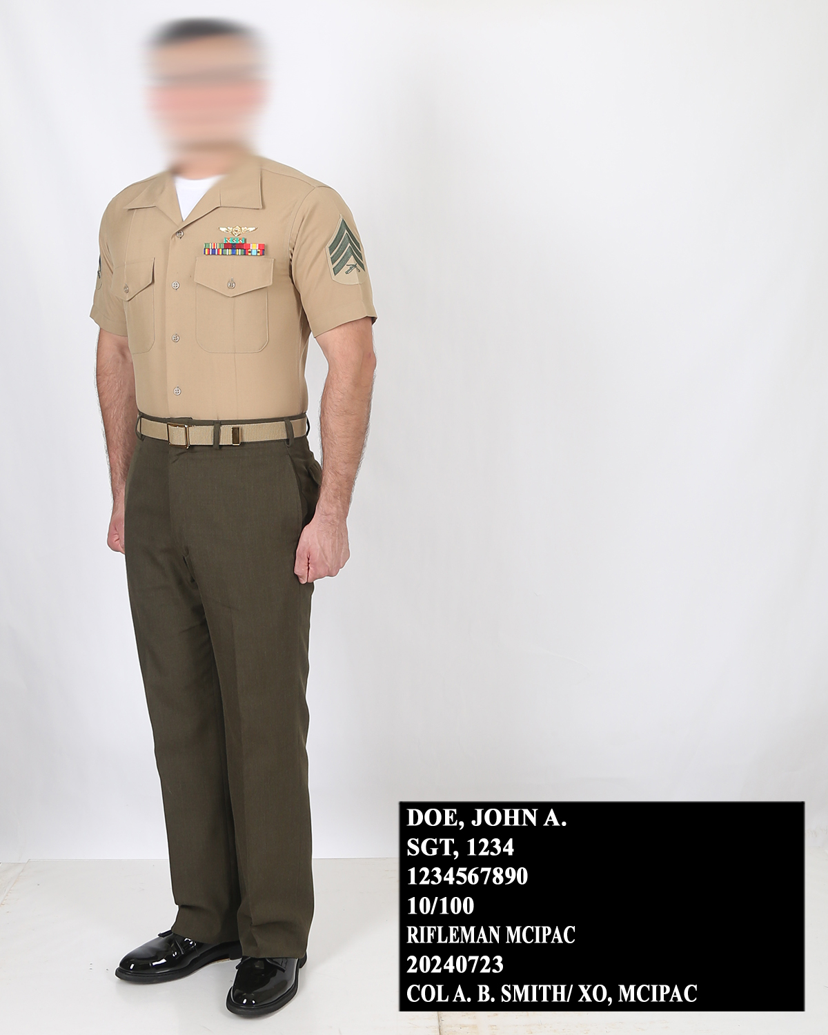 OMPF photos are taken digitally and will be forwarded to the Deputy Commandant for Manpower and Reserve Affairs, Code MMSB, within 2 business days to be filed in the Marine’s Official Military Personnel File. Height/Weight Verification Letters are required for all OMPF photographs, regardless of rank and must be certified by the S-3 (within 30 days) and signed by the appropriate verifying authority per the current MARADMIN (CO, XO, SGTMAJ, 1STSGT).